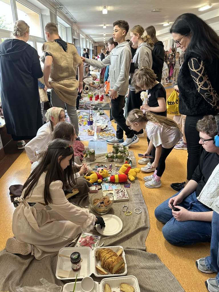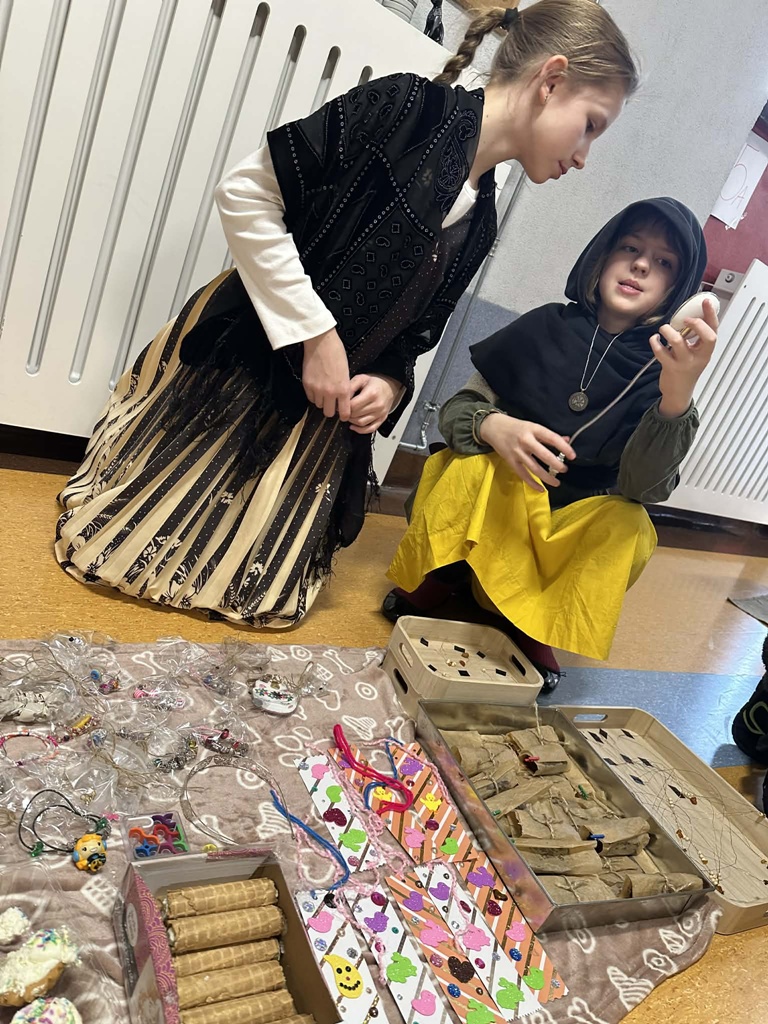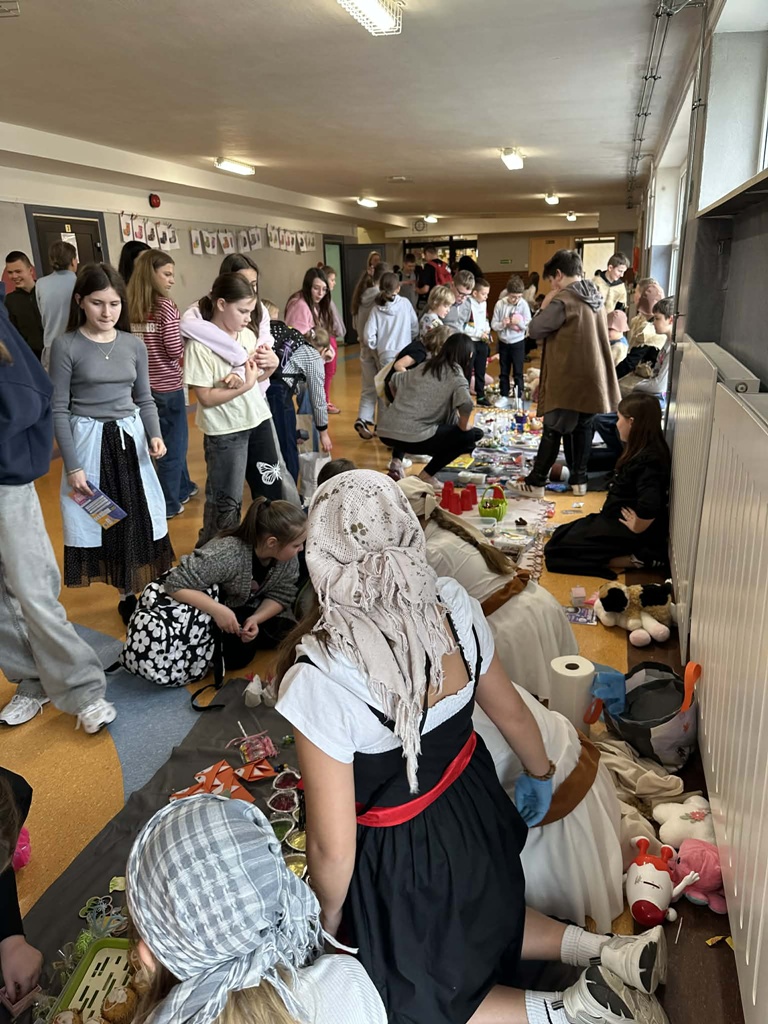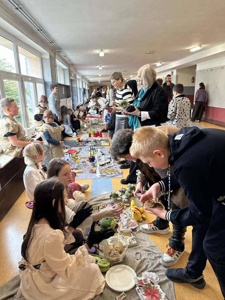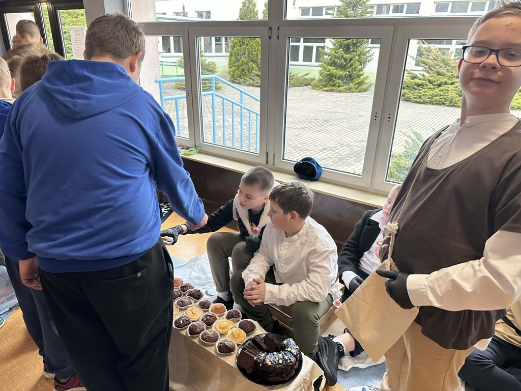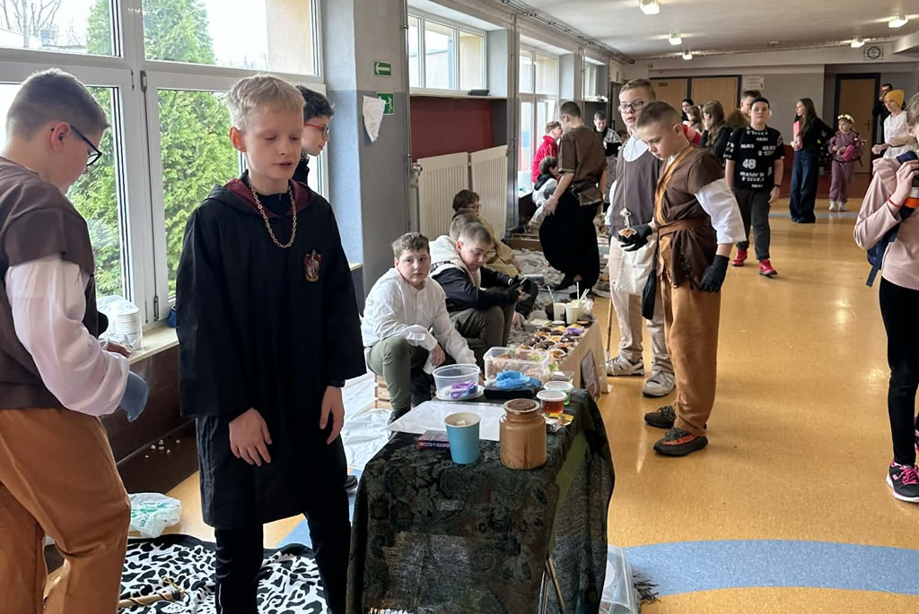 W czwartek 26 marca w naszej szkole odbył się wyjątkowy Jarmark Średniowieczny, przygotowany przez uczniów klas piątych. Wydarzenie przeniosło nas w czasy dawnych kupców i rzemieślników, a szkolne korytarze zamieniły się w tętniący życiem targ.