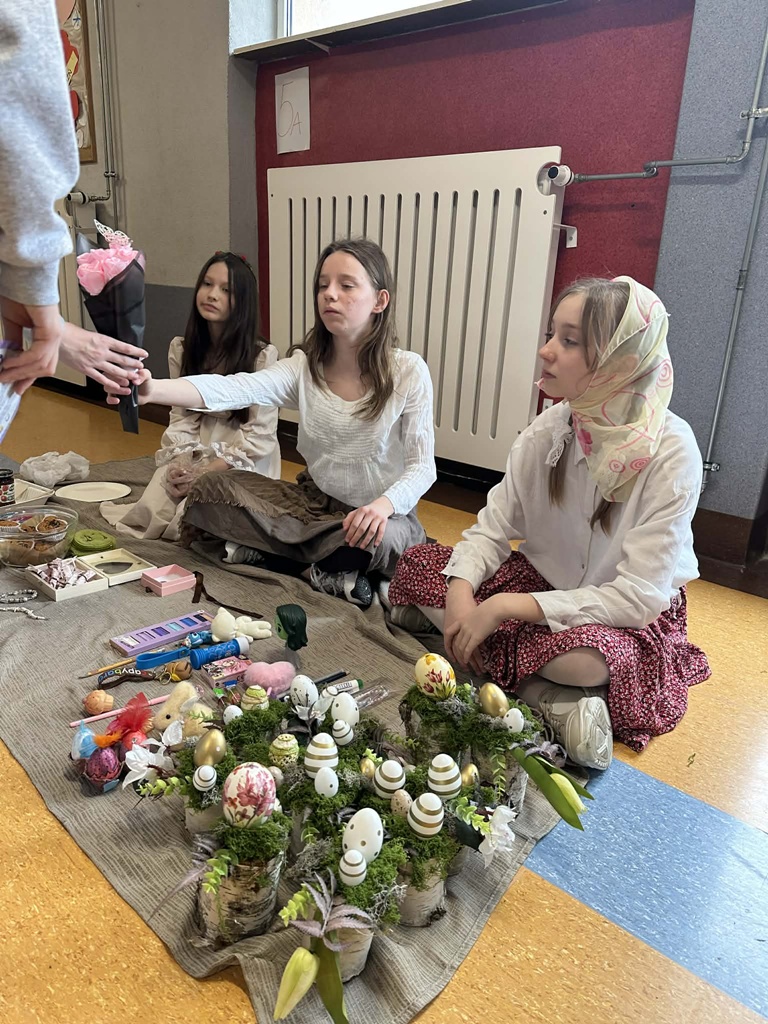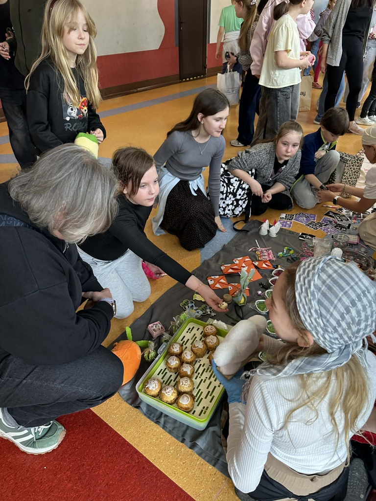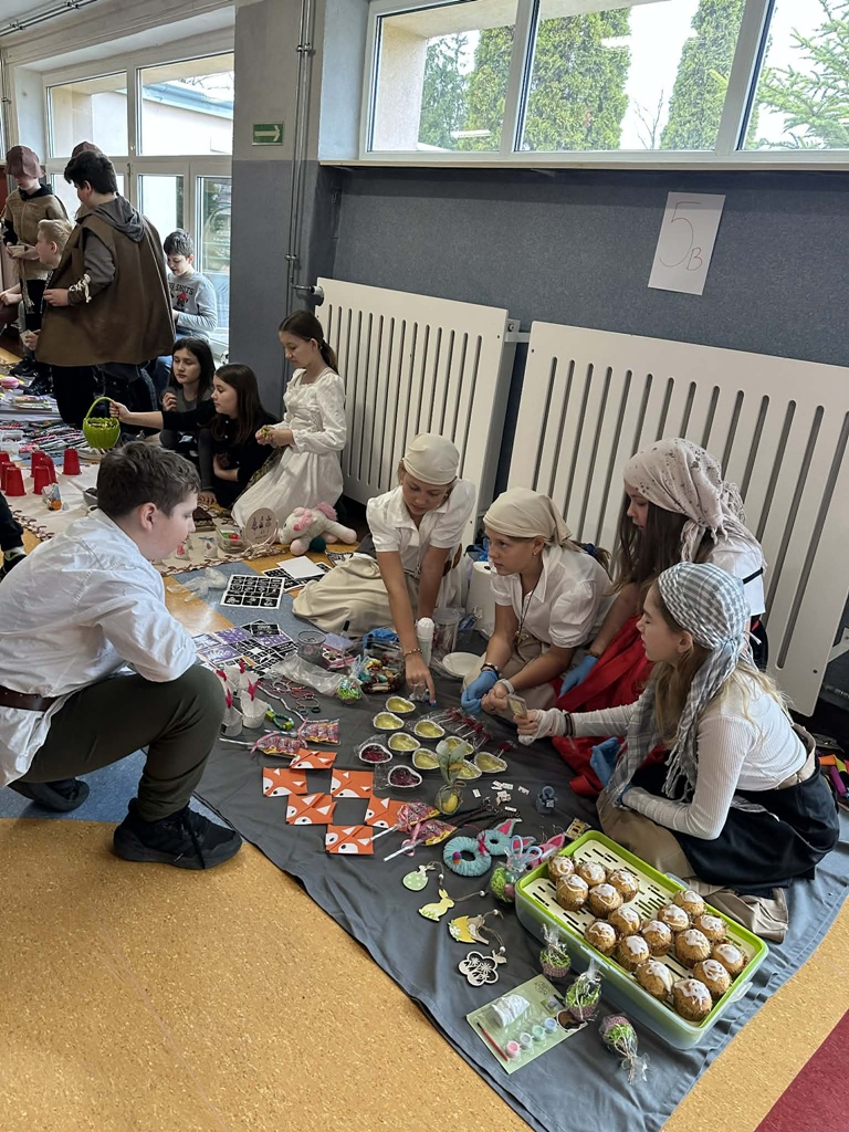 Uczniowie z ogromnym zaangażowaniem własnoręcznie przygotowali wyroby. Na stoiskach można było znaleźć między innymi piękną, ręcznie robioną biżuterię, pyszne domowe ciasta i ciasteczka oraz kolorowe ozdoby wielkanocne. Każdy produkt był efektem pracy, kreatywności i pomysłowości młodych twórców. Szczególną atrakcją jarmarku był handel wymienny, który cieszył się dużym zainteresowaniem. Uczniowie mogli wymieniać się swoimi wyrobami, ucząc się przy tym współpracy, negocjacji i wartości dawnych tradycji handlowych. Jarmark był nie tylko świetną zabawą, ale także doskonałą okazją do nauki poprzez działanie. Dziękujemy wszystkim uczniom i nauczycielom za zaangażowanie w przygotowanie tego niezwykłego wydarzenia!