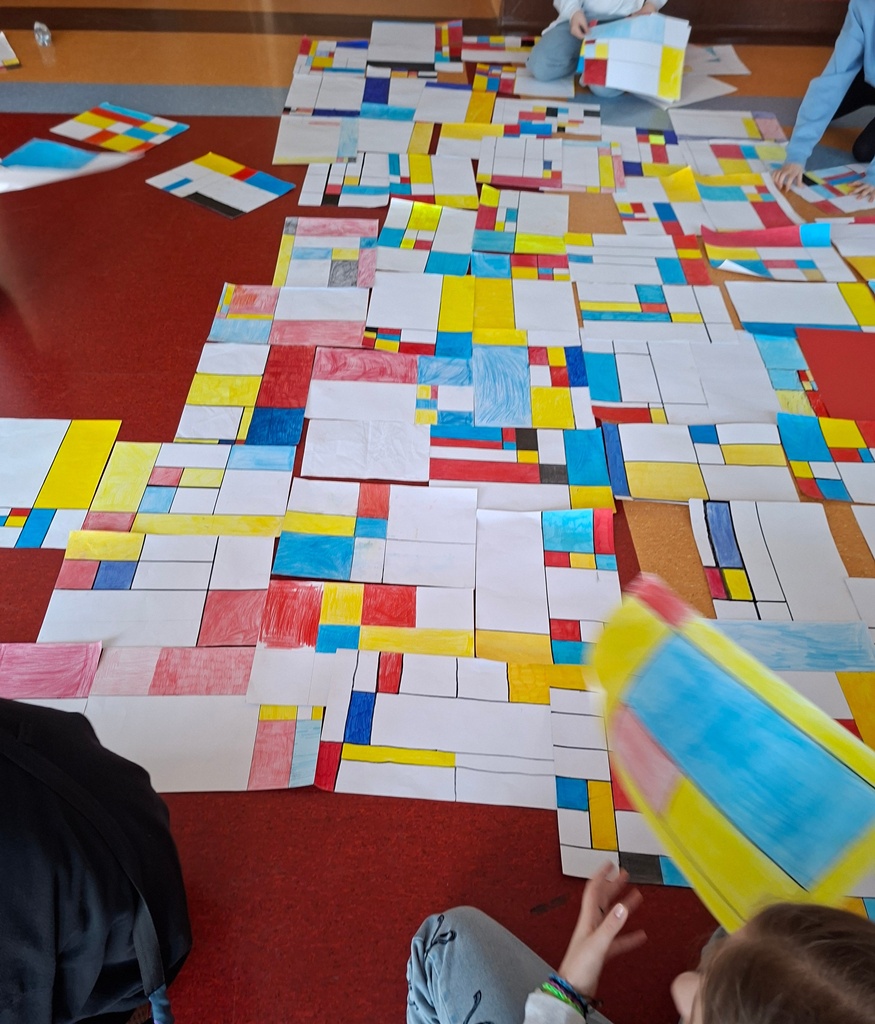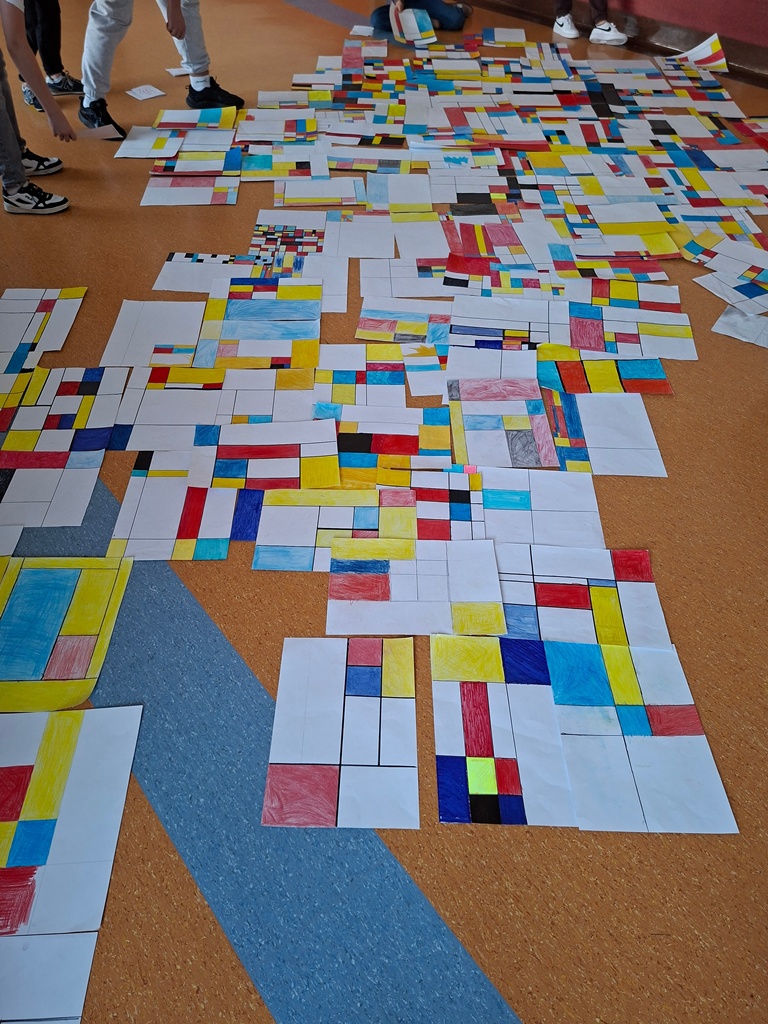 Głównym celem zadania było połączenie indywidualnych prac uczniów w jedną, wielkoformatową kompozycję inspirowaną neoplastycyzmem Pieta Mondriana. Uzyskanie spójnego efektu wizualnego – jednolitej kompozycji przy tak dużej ilości prac.