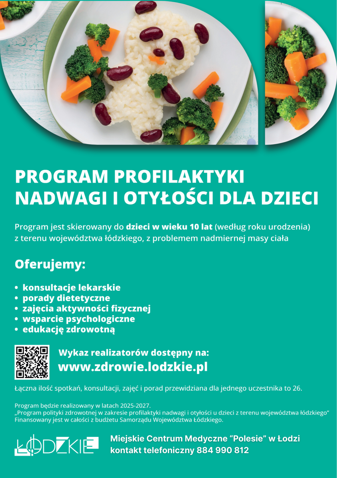 Uprzejmie informujemy, iż na terenie województwa łódzkiego trwa realizacja „Programu polityki zdrowotnej w zakresie profilaktyki nadwagi i otyłości u dzieci z terenu województwa łódzkiego”. Program w całości jest finansowany z budżetu Samorządu Województwa Łódzkiego i jest realizowany jest przez 16 przychodni i szpitali z terenu województwa łódzkiego.