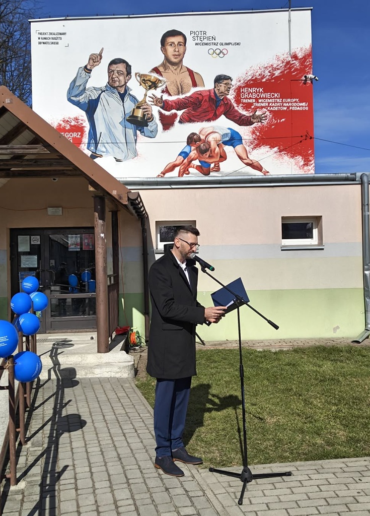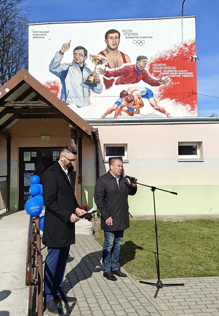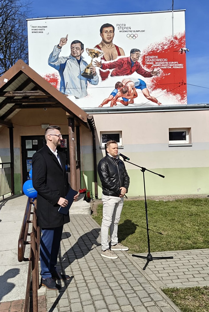 Wydarzenie przy ulicy Jerozolimskiej 73 zgromadziło gości, pedagogów oraz uczniów, którzy wspólnie świętowali upamiętnienie trzech wybitnych postaci: Piotra Stępnia – wicemistrza olimpijskiego, Henryka Grabowieckiego – wicemistrza Europy, trenera i pedagoga, Grzegorza Ludwiga – cenionego trenera. Mural zdobiący naszą szkołę to nie tylko dzieło sztuki, ale przede wszystkim lekcja historii i motywacji. Sylwetki mistrzów mają przypominać naszym uczniom o tym, że dzięki ciężkiej pracy, pasji i wytrwałości można sięgać po najwyższe sportowe laury. Uroczystości towarzyszyło otwarcie Wystawy Pamiątek Sportowych. Od godziny 10:00 do 13:00 odwiedzający mogli podziwiać unikalne eksponaty – medale, puchary i dokumentację sukcesów naszych bohaterów. Była to niepowtarzalna okazja, by z bliska poczuć ducha wielkiej rywalizacji. Choć oficjalne uroczystości za nami, to nie koniec sportowych emocji! Wystawa pamiątek pozostaje w murach naszej szkoły i będzie dostępna wyłącznie dla uczniów SP nr 5 do 14 kwietnia. Zachęcamy wszystkie klasy wraz z wychowawcami do jej odwiedzenia w nadchodzących dniach. Dziękujemy wszystkim za obecność w tym ważnym dla nas dniu. Zapraszamy do obejrzenia fotorelacji z wydarzenia poniżej!