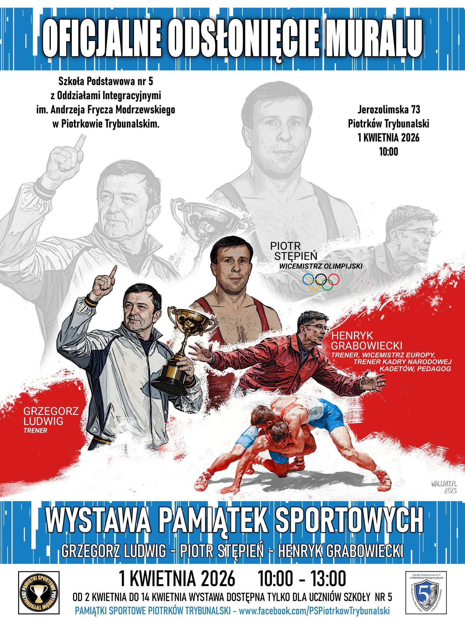 Mamy zaszczyt zaprosić całą społeczność lokalną, sympatyków sportu oraz mieszkańców na Oficjalne Odsłonięcie Muralu poświęconego legendom piotrkowskich zapasów!