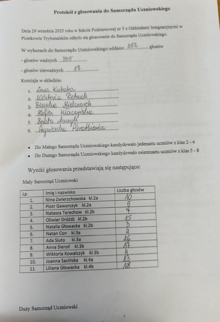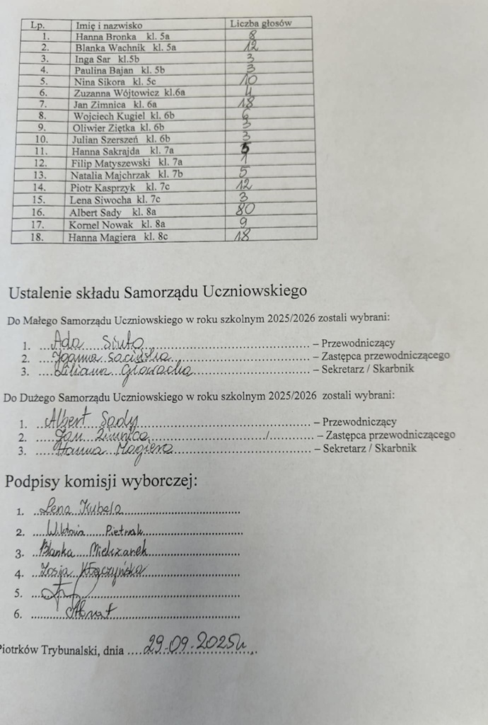 W poniedziałek 29 września 2025 r. odbyły się w naszej szkole wybory do Samorządu Uczniowskiego.